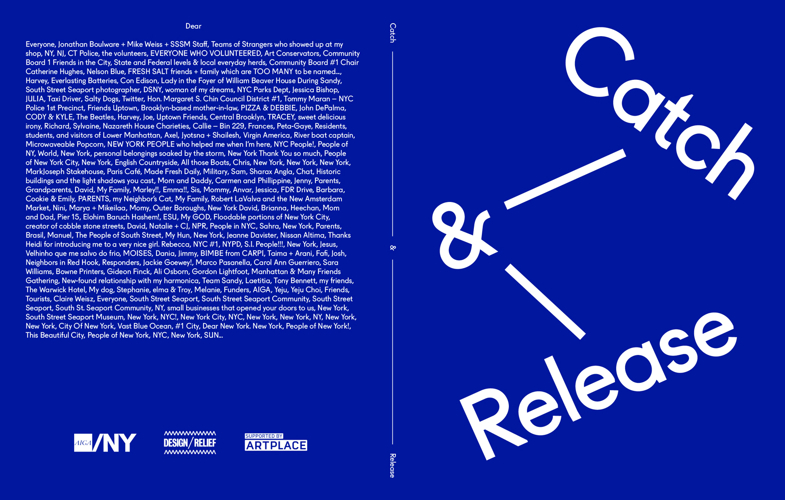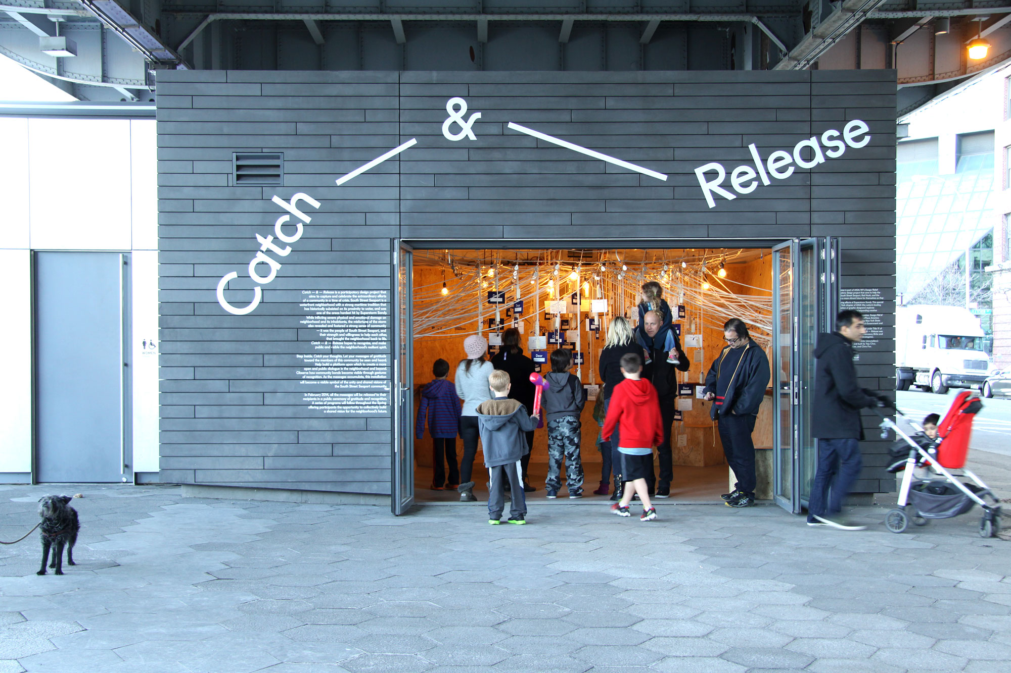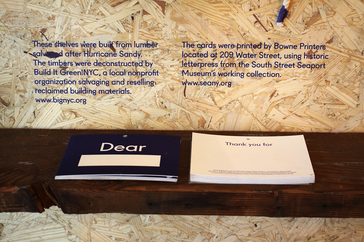 Catch — & — Release is part of AIGA/NY’s Design/Relief initiative, a participatory design project that aims to help the neighborhoods of South Street Seaport, Red Hook, and the Rockaways imagine a more vibrant future for themselves as they overcome the lingering effects of Superstorm Sandy. This special project of the New York chapter of AIGA explores the potential of design in defining and expanding creative placemaking to positively transform communities.